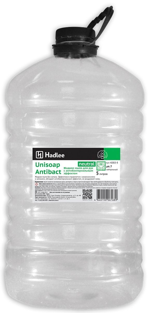 HADLEE Unisoap Antibact Neutral Мыло жидкое без запаха с антибактериальным эффектом, без цвета 5л (4Код:286-0001