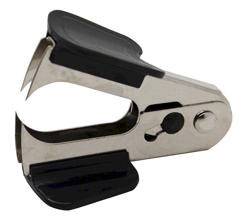 Рабочий механизм антистеплера выполнен из металла, корпус — из пластика черного цвета. Позволяет разжать закрепленные скобы, не нанося повреждений ни материалу, ни кончикам пальцев.