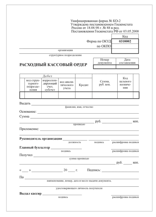 Бланк РАСХОДНЫЙ КАССОВЫЙ ОРДЕР, КО-2, формат А5, 100 экз