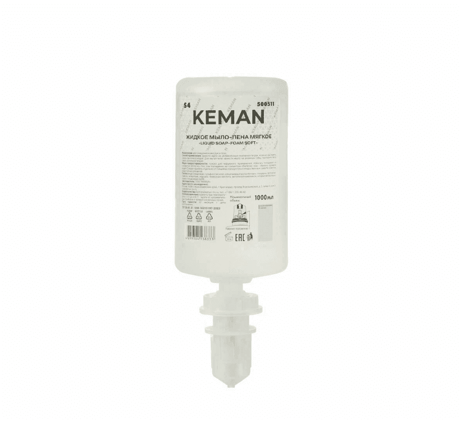 KEMAN мыло-пена мягкое бесцеветное с отдушкой, жесткий картридж 1000 мл (S4)