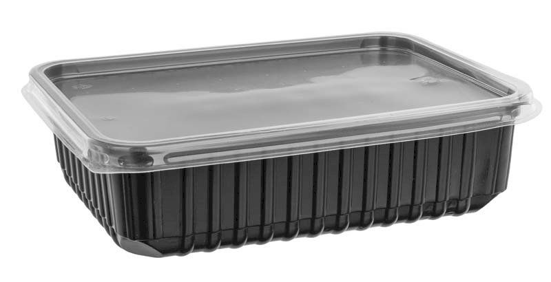Прямоугольный черный контейнер может использоваться для упаковки сладостей, фруктов, овощей, мяса, и других товаров. А защиту содержимого от внешних воздействий обеспечит плотно прилегающая крышка.