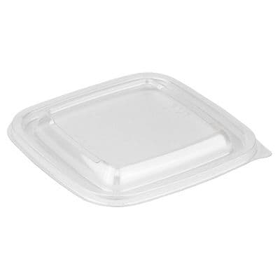 Крышка к контейнеру изготовлена из ПЭТ прозрачного цвета. Герметичная, плотно прилегает к краю контейнера. Размер 126х126 мм