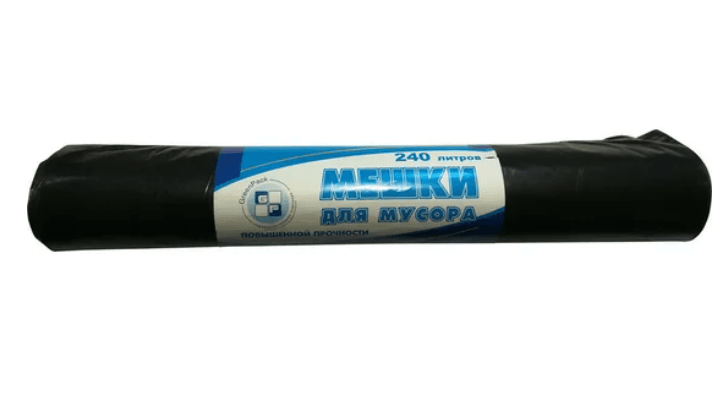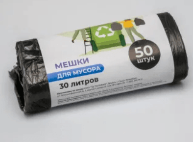 Мешки для мусора. Изготовлены из плотного полиэтилена низкого давления (ПНД), устойчивого к воздействию кислот и щелочей. Служат для сбора, хранения и транспортировки отходов различного происхождения: пищевых, бытовых, производственных. Применяются в ресторанах, отелях, общественных заведениях, в быту.