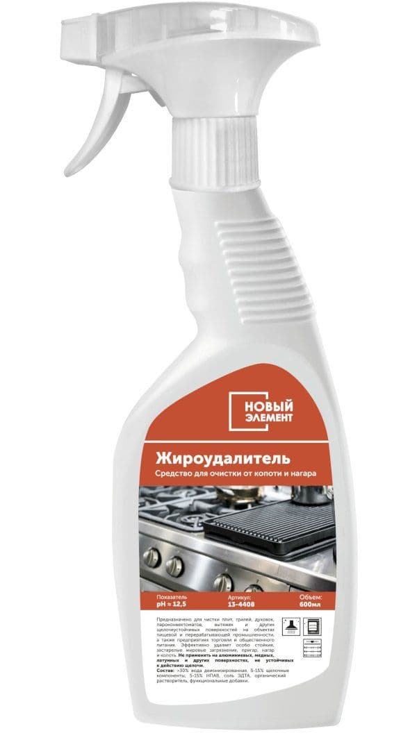 Новый Элемент Grl 40 Жироудалитель - высокощелочное моющее средство. Предназначено для чистки плит, грилей, духовок, пароконвектоматов, вытяжек и других щелочеустойчивых поверхностей. Эффективно удаляет особо стойкие , застарелые жировые загрязнения, пригары, копоть, застывшие растительные и животные жиры. Не применять на алюминиевых, медных, латунных и других поверхностях, не устойчивых к действию щелочи.