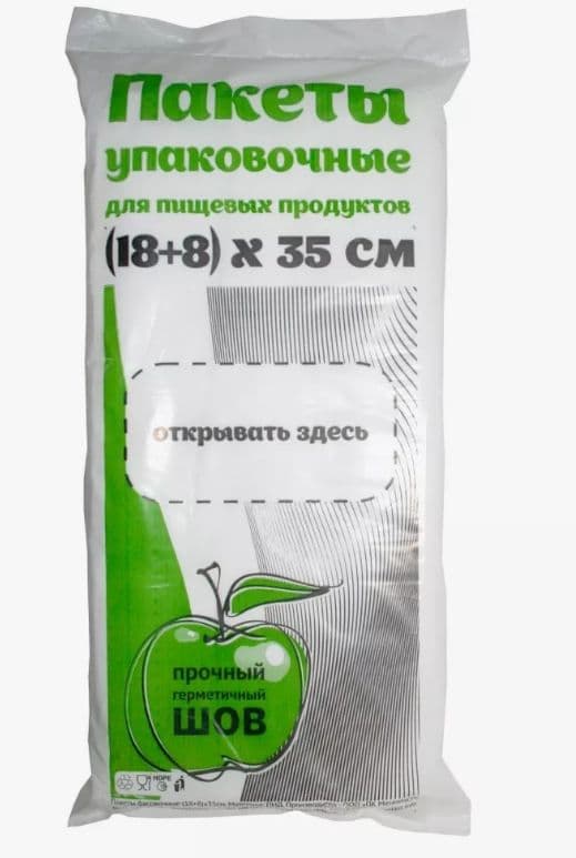 Пакет фасовочный 18+8х35см 9 мкм евроблок (1000) ПНД
