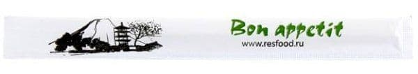 Палочки для еды 23 см в индивидуальной белой бумажной упаковке с рисунком (100 шт.в уп)