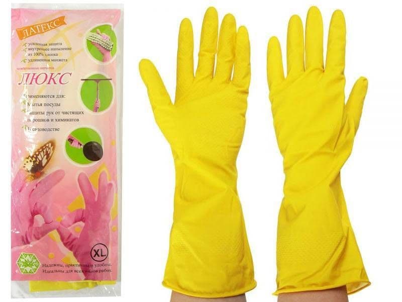 Перчатки хозяйственные латекс Gloves LUX желтые L