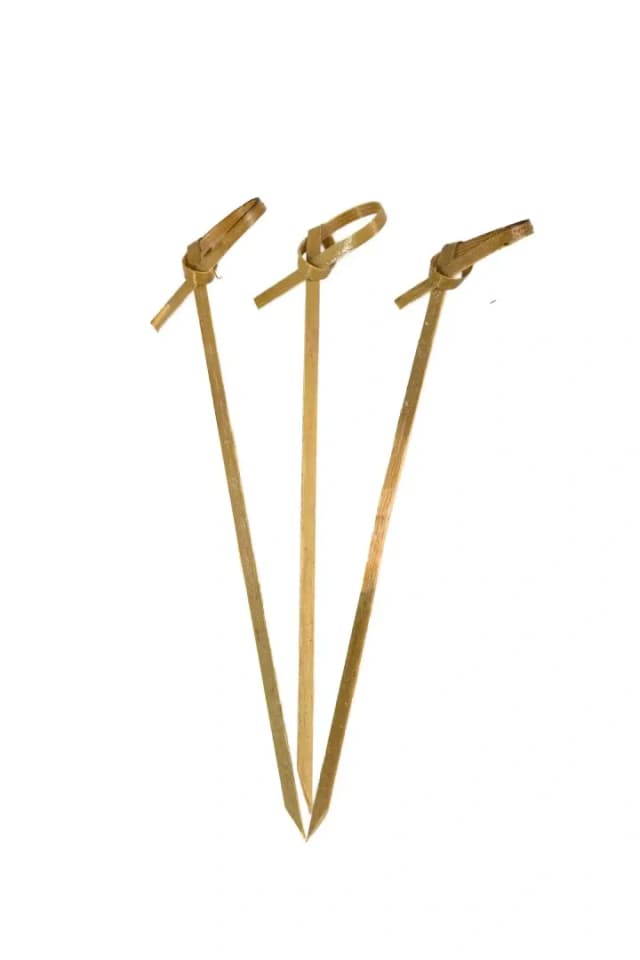 Декоративные пики Узелок изготовлены из натурального бамбука. Используются для создания канапе, мини-бутербродов, украшения блюд. Остро заточенные, прочные. Длина пики для канапе — 10 см. В упаковке 100 штук. В коробке 30 упаковок.