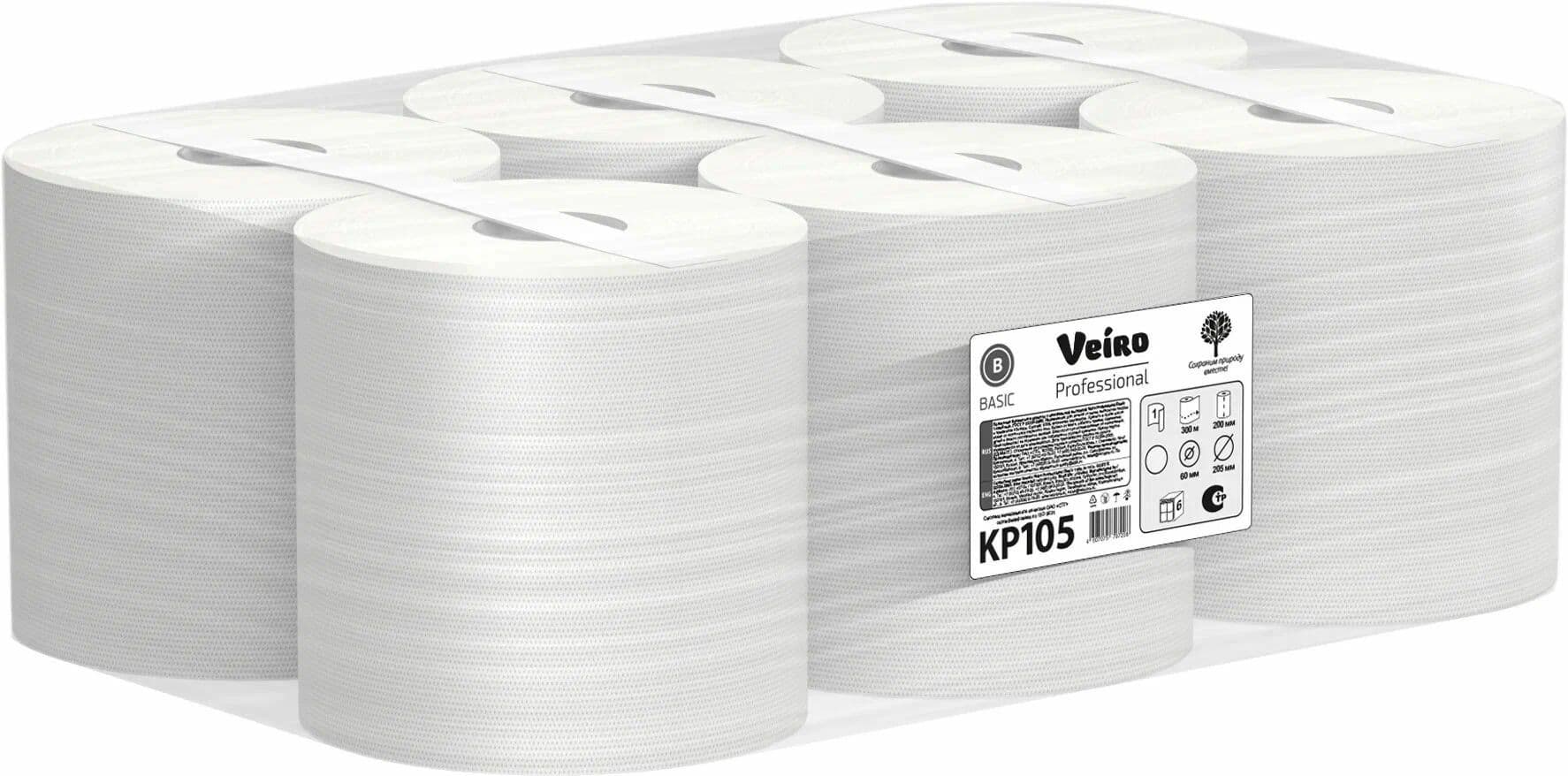 Полотенца бум. в рулоне 1-сл 300м белые с центральной вытяжкой Veiro VKP105 (2/6)