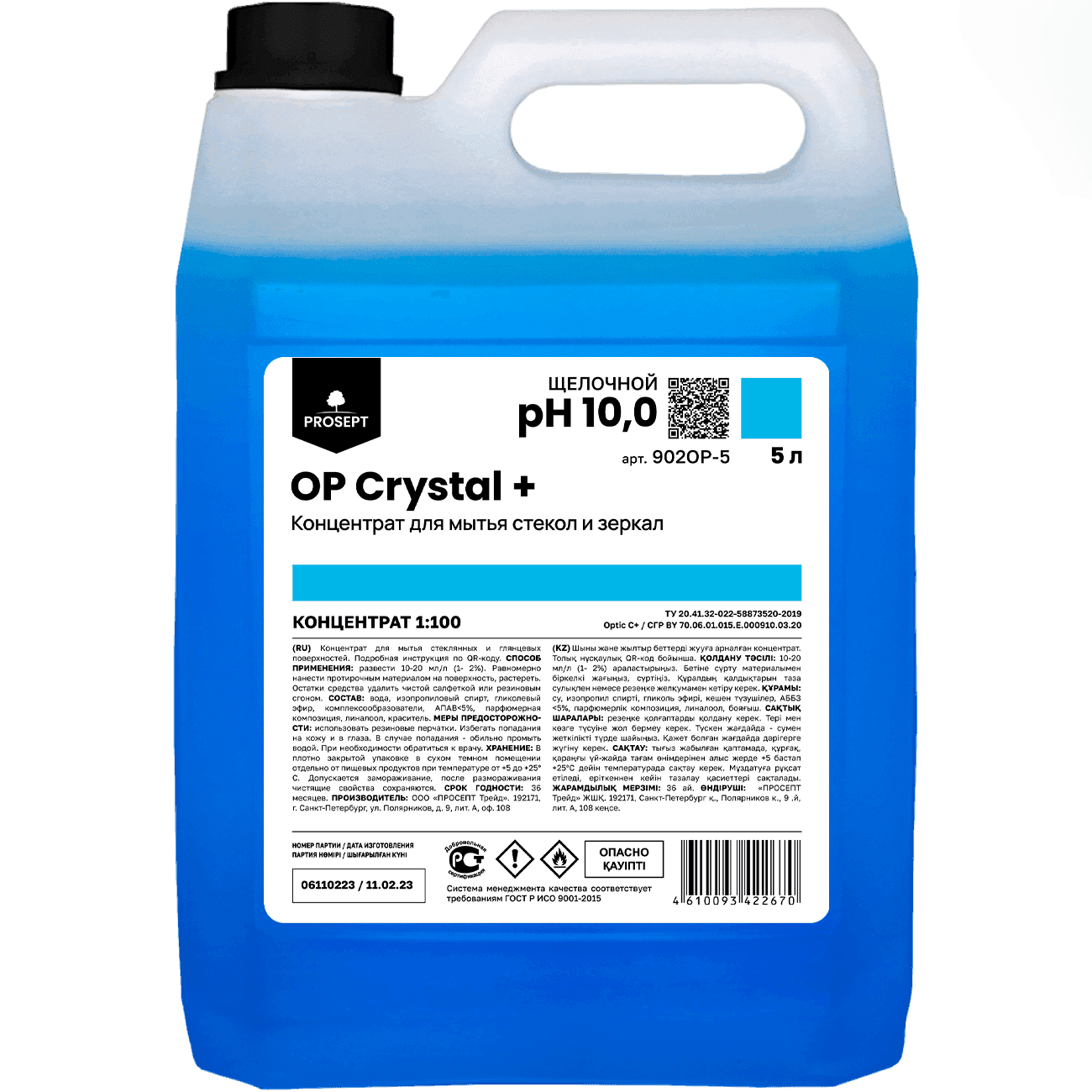 Prosept Средство для мытья стекол и зеркал концентрат OP Crystal + 5л