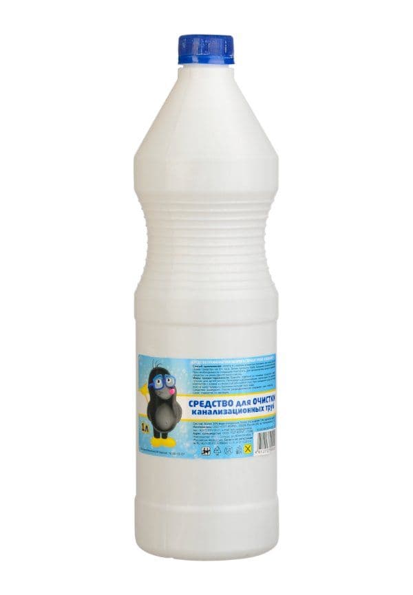 Средство для прочистки труб Крот Специалист для очистки водостоков ванн, умывальников и канализационных труб от засорения органическими посторонними материалами и отходами жирового характера. Объем 1 литр, в упаковке 15 штук. Состав: более 30% вода очищенная, более 5%, но не менее 15% гидроксит натрия.