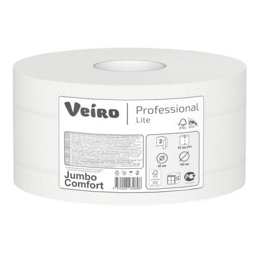 Туалетная бумага 2-сл 150м белая Veiro Professional Lite Jumbo Comfort (12)