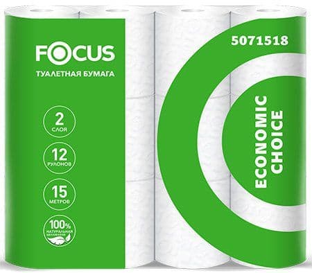 Туалетная бумага 2-сл белая FOCUS Economic (12 рул/уп)