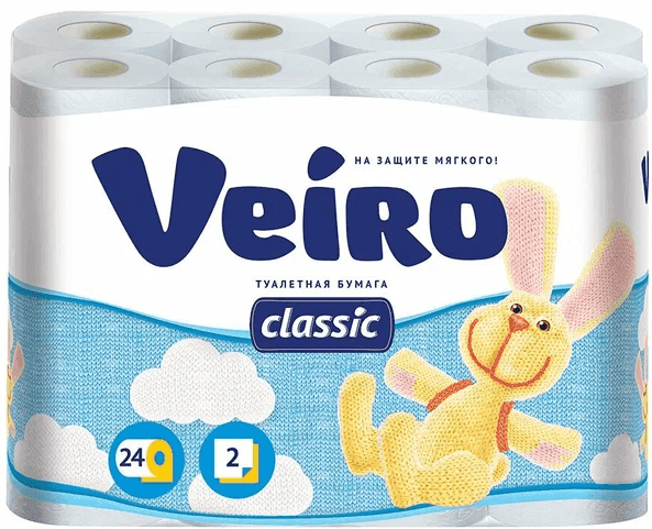 Туалетная бумага 2-сл белая в рул 125л Veiro Classic (24 рул/упак)