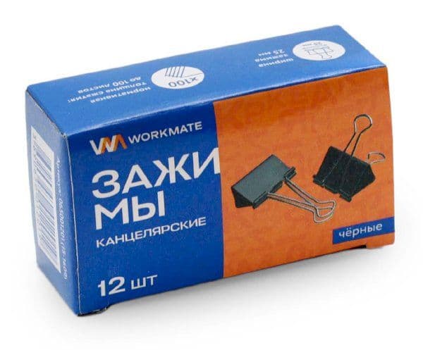 Изготовлены из стали с черным покрытием. Позволяют скреплять до 100 листов. Не деформируют бумагу. Ширина зажима - 41 мм. Поставляются по 12 штук в картонной коробке.