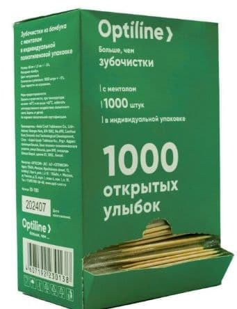 Зубочистки с ментолом бамбуковые Optiline в PE индивидуальной упаковке (1000шт/уп)